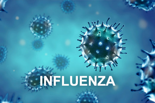 The influenza virus causes flu. Influenza A, B and C are the most common